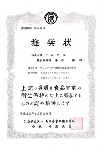 プリュテックが公益社団法人新潟県食品衛生協会様より推奨されました。